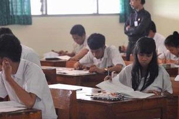 Ujian Nasional Hari Pertama - Suasana pelaksanaan ujian nasional hari pertama di SMA Negeri 63 di kawasan Petukangan, Jakarta, Senin (16/4/2012).