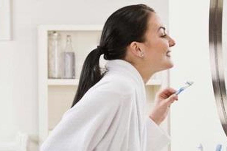 Pastikan Anda menggosok gigi sambil menatap cermin, untuk melihat bahwa sikat gigi telah menyentuh bagian-bagian yang harus dibersihkan.(SHUTTERSTOCK)