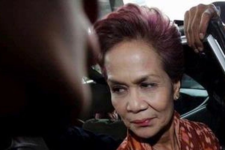 Tersangka Miranda Goeltom di gedung Komisi Pemberantasan Korupsi (KPK), Jakarta, saat datang untuk menjalani pemeriksaan pertama sebagai tersangka dalam kasus suap pemilihan Deputi Gubernur Senior Bank Indonesia 2004, Jumat (1/6/2012). Usai diperiksa, Miranda ditahan di ruang tahanan KPK.(KOMPAS/LUCKY PRANSISKA)