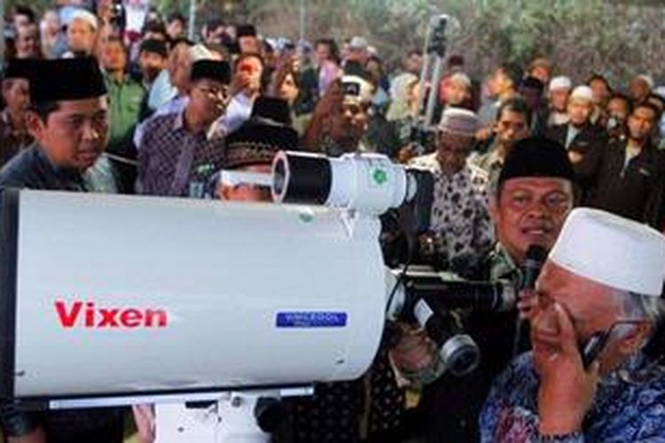 Petugas dari Kemenag Perwakilan DI Yogyakarta melakukan pemantauan hilal di Pos Observasi Bulan (POB) Syekh Bela Belu, Parangkusumo, Bantul, DI Yogyakarta, Kamis (19/7/2012).