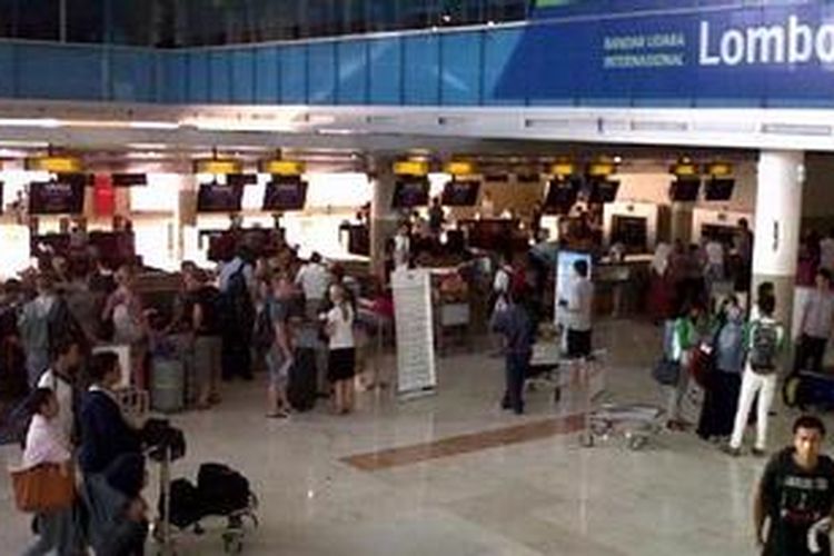 Suasana counter check-in Bandara Internasional Lombok, NTB, Sabtu (29/9/2012).