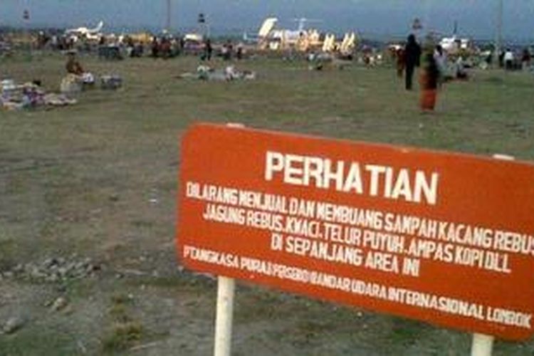 Area terlarang untuk pedagang asongan di Bandara Internasional Lombok, NTB, tetap dipenuhi oleh pedagang asongan.(Kompas.com/Sabrina Asril)