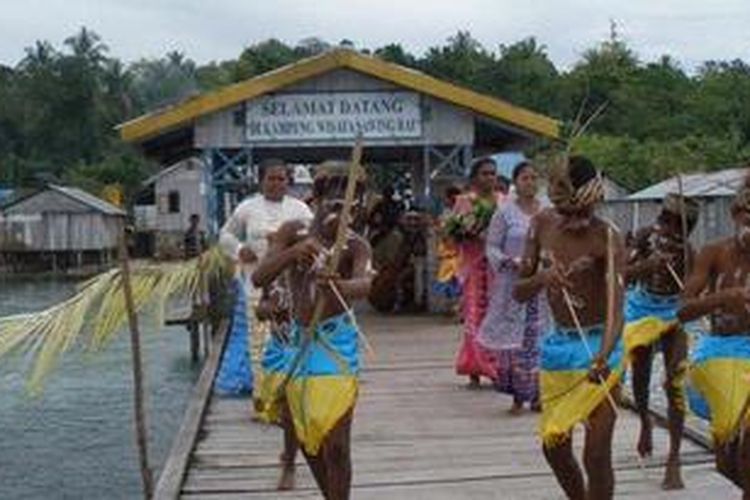 Tarian makakero, tarian sambutan penduduk Desa Sawinggrai, Raja Ampat.(ICHA RASTIKA)