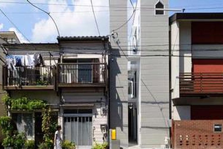 Arsitek Osamu Nishida bersama Naoko Mangyoku. Mereka mendirikan sebuah "rumah tipis" di antara dua rumah berukuran normal.(http://www.spoon-tamago.com)