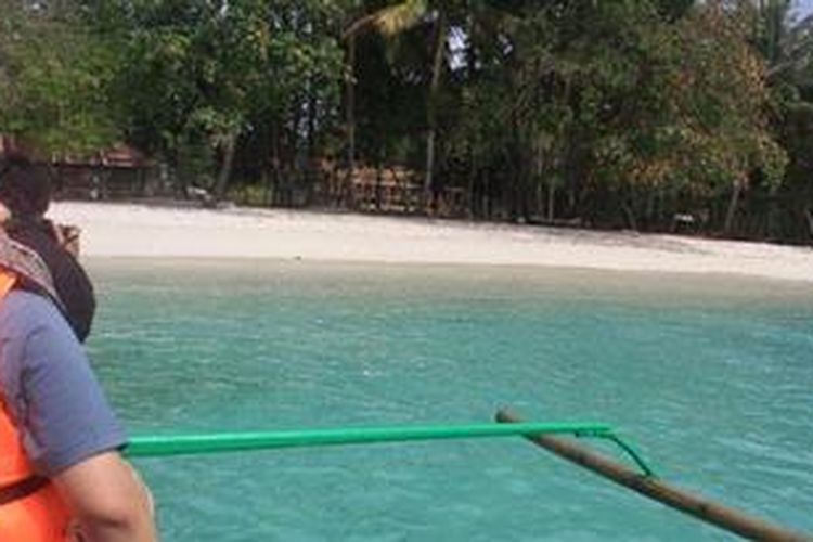 Perahu bersiap menyandar di Pulau Kiluan, Lampung.
