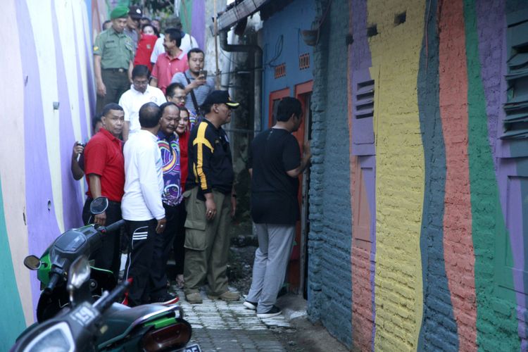 Wali Kota Semarang Hendrar Prihad sedang meninjau penataan Kampung Pelangi.