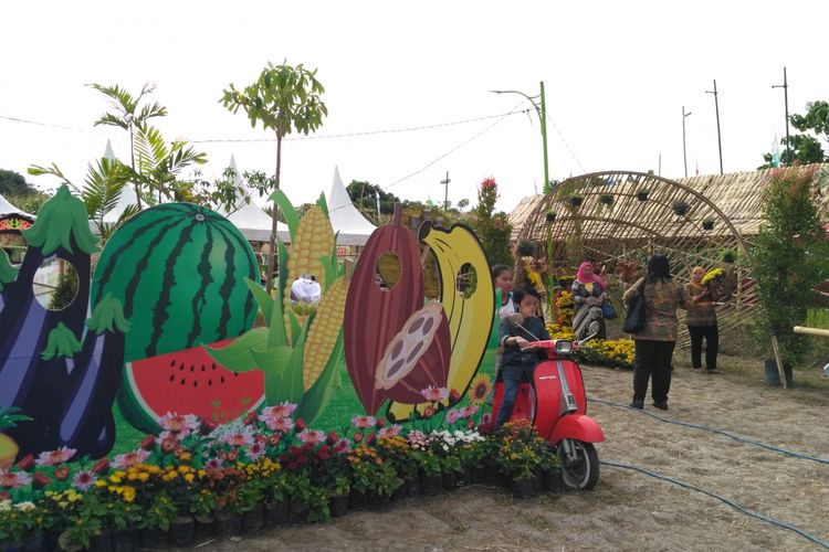 Sejumlah pengunjung berfoto di sudut yang disediakan panitia penyelenggara Banyuwangi Agro Expo 2017.
