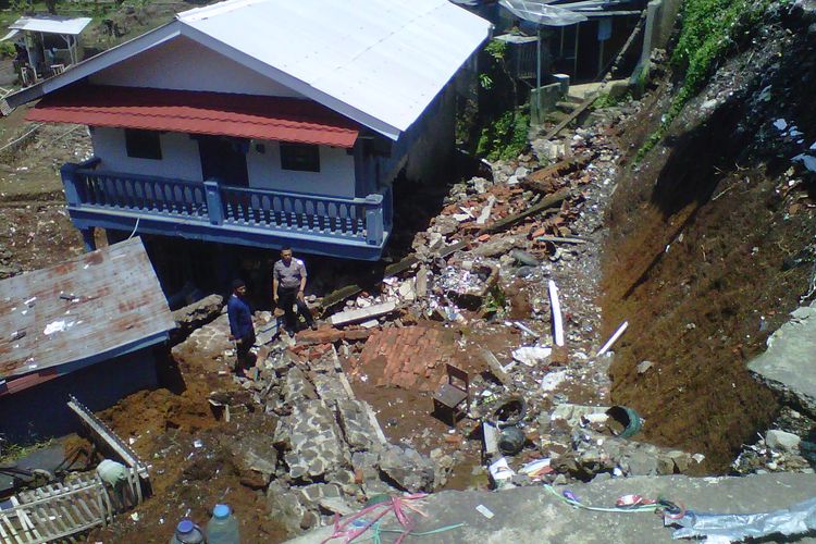 Bangunan pondok pesantren yang terdampak ambrolnya tebing penahan tanah SDN Pasirhalang, Sukaraja, Sukabumi, Jawa Barat, Minggu (5/3/2017). Bencana longsor terjadi Sabtu (4/3/2017) sekitar pukul 17:00 Wib.