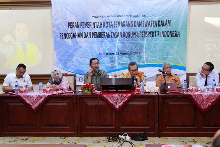Wali Kota Semarang Hendrar Prihadi bersama Wakil Ketua KPK Alexander Marwata pada workshop bisnis berintegrasi di Semarang, Selasa (22/8/2017).