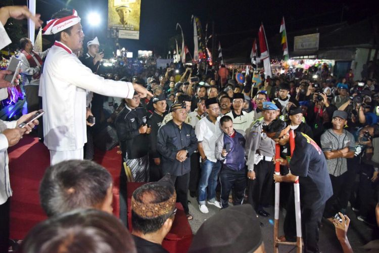Bupati Purwakarta Dedi Mulyadi mengajak masyarakat Purwakarta melestarikan permainan tradisional egrang dengan menggelar Festival Panji Demokrasi, Jumat (19/8/2017)