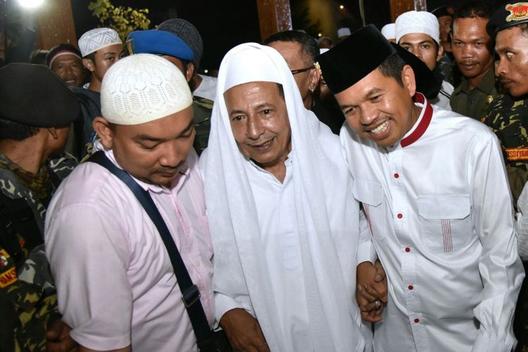 Habib Muhammad Luthfi bin Yahya bersama Bupati Purwakarta Dedi Mulyadi saat tabligh akbar dan zikir kebangsaan di Taman Pasanggrahan Padjadjaran, Purwakarta, Selasa (22/8/2017)(IRWAN NUGRAHA/KOMPAS.com)