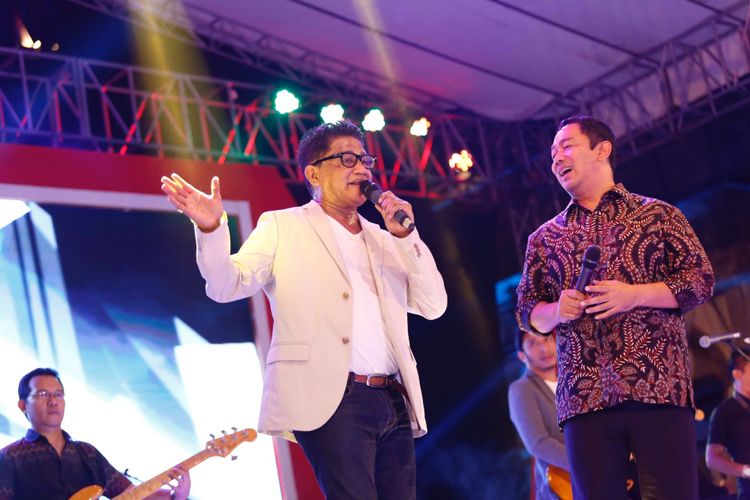 Wali Kota Semarang Hendrar Prihadi bernyanyi bersama penyanyi Andre Hehanusa pada peringatan HUT Kemerdekaan RI ke-72, Sabtu (26/8/2017) malam.