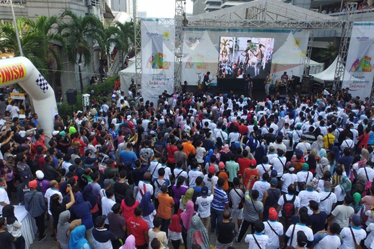 Antusiasme pengunjung Car Free Day menikmati hiburan di pangung PLN dalam rangka peringatan Hari Pelanggan Nasional di Jakarta (10/9)