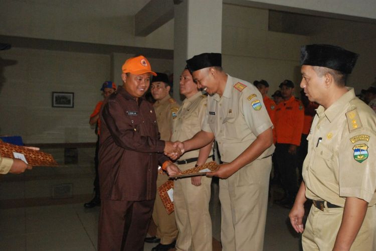 Bupati Tasikmalaya Uu Ruzhanul Ulum usai apel pagi di Kantor Kabupaten Tasikmalaya, Senin (16/10/2017). Kabupaten Tasikmalaya siap menghadapi berbagai ragam bencana yang berpotensi terjadi pada masa pancaroba.