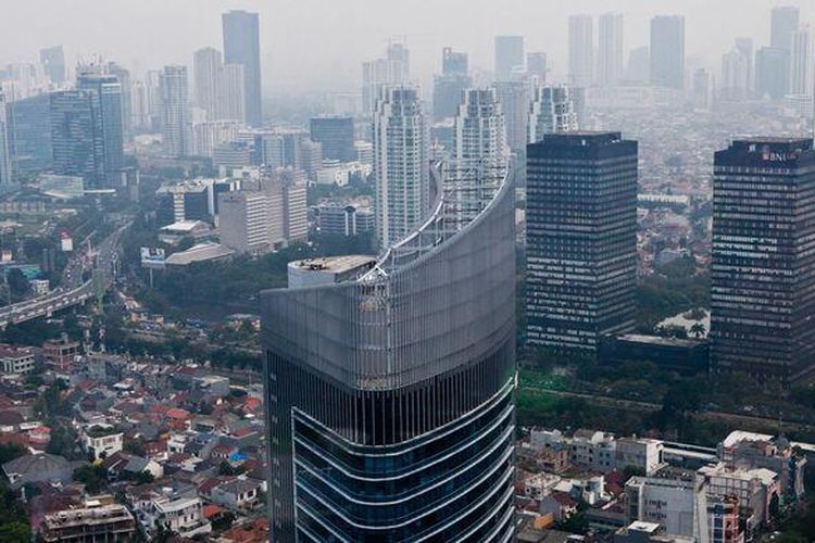 Suasana gedung-gedung perkantoran di DKI Jakarta difoto dari ketinggian. Kebanyakan gedung-gedung ini belum bersertifikat sebagai green building.