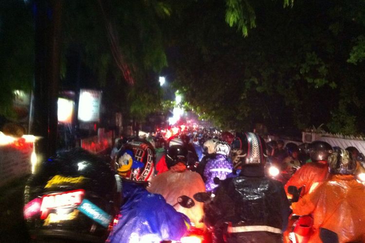 Kemacetan di jalur arah Kemang, Jakarta Selatan. Kamis (19/10/2017) malam.