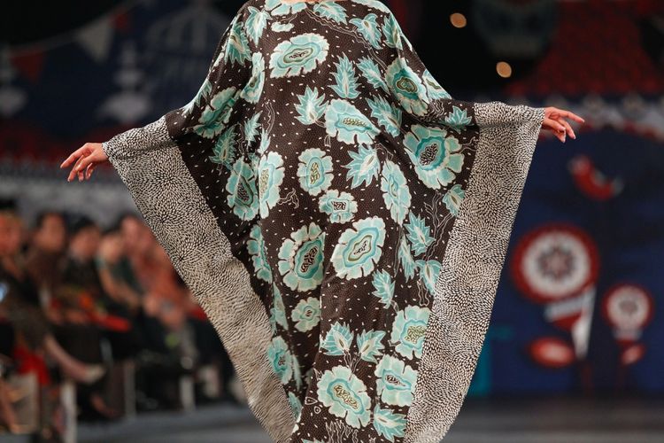 Model memperagakan busana karya Denny Wirawan dalam peragaan busana bertajuk Pasar Malam di Grand Ballroom Hotel Indonesia Kempinski, Jakarta, Kamis (3/9/2015). Denny menghadirkan 80 koleksi busana ready to wear dari label keduanya, Balijava by Denny Wirawan, yang terinspirasi dari Batik Kudus. KOMPAS IMAGES / RODERICK ADRIAN MOZES(RODERICK ADRIAN MOZES)
