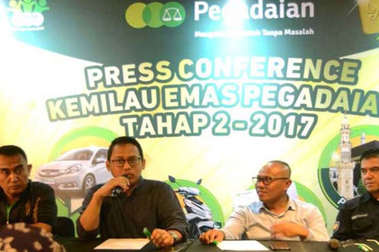 Jajaran direksi Pegadaian dalam sesi konferensi pers Kemilau Emas Pegadaian 2017 Tahap II yang berlangsung pada Sabtu (16/12/2017) malam di One Belpark Mall, Pondok Labu, Jakarta Selatan. (KOMPAS.COM/Priskilla Gerardine)