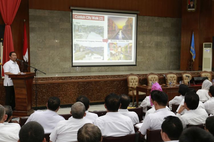 Wali Kota Semarang Hendrar Prihadi menjelaskan konsep City Walk di Balai Kota Semarang pada Rabu (20/12/2017).