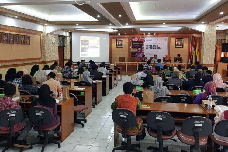 Peluncuran buku Perubahan Berkelanjutan, Gotong Royong Memakmurkan Jawa Timur di kampus Unair Surabaya.