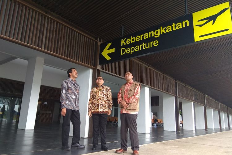 Bupati Banyuwangi Abdullah Azwar Anas (tengah) dan Muhammad Awaluddin (batik hitam) saat meninjau bandara Banyuwangi Jumat (22/12/2017)