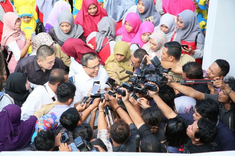 Bupati Banyuwangi Abdullah Azwar Anas saat melayani wawancara dari sejumlah wartawan, Senin (8/1/2018).