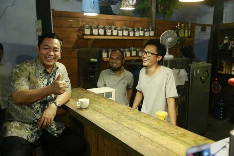 Wali Kota Semarang Hendrar Prihadi (Kiri) berkunjung ke kedai kopi di Semarang.
