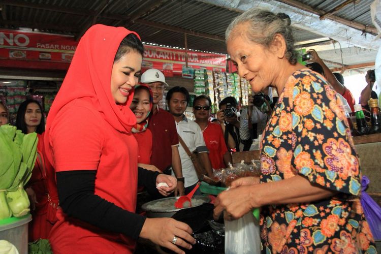Puti Guntur Soekarno menyapa para pedagang dan warga di Pasar Besar Ngawi, Jawa Timur, Minggu (4/2/2018).