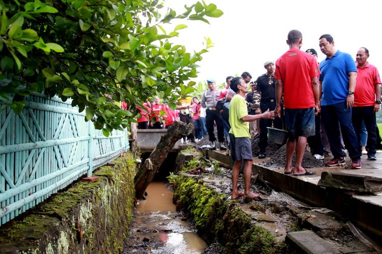 Wali Kota Semarang Hendrar Prihadi mengunjungi warga Kelurahan Mangkang Wetan, Kecamatan Tugu, Kota Semarang yang kebanjiran sejak Senin (5/2/2018).