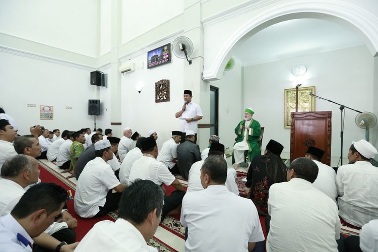 Wali Kota Semarang, Hendrar Prihadi, berdoa bersama ulama asal Turki, Dr. Muhammad Fadhil Al-Jaelani Al-Hasani, yang merupakan keturunan ulama besar Abdul Qodir Al-Jaelani, Rabu (21/3/2018).