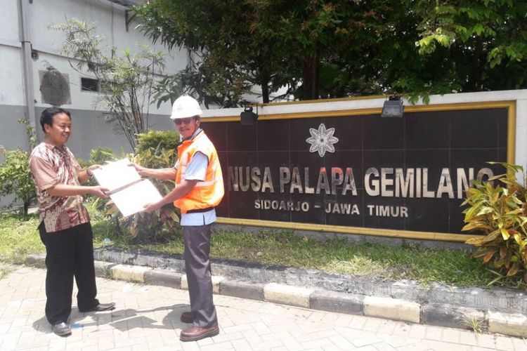 Penyaluran gas perdana ke PT Nusa Palapa Gemilang, pabrik pupuk di Sidoarjo, Jawa Timur, Jumat (23/3/2018). PT Nusa Palapa Gemilang memilih menggunakan gas bumi sebagai bahan bakar kegiatan produksinya karena lebih hemat dari batu bara yang selama ini digunakan pabrik tersebut.
