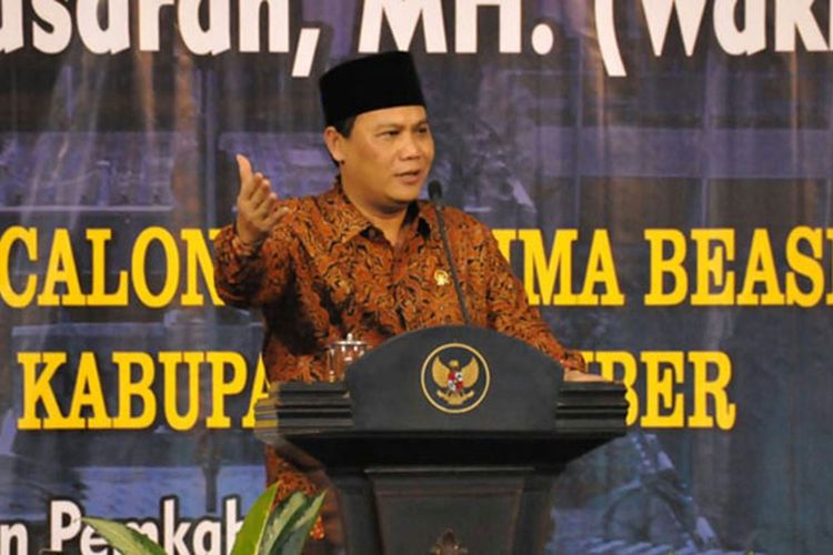 Wakil Ketua MPR RI Ahmad Basarah bicara soal investasi sumber daya manusia saat menjumpai 2.000 mahasiswa calon penerima Beasiswa Utusan Daerah Kabupaten Jember di Gedung Aula Panglima Besar Soedirman, Kantor Bupati Jember, Minggu (15/4/2018).