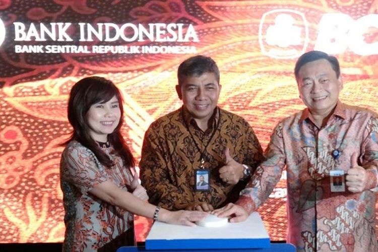 Direktur PT Bank Central Asia Tbk (BCA) Santoso (kanan), Direktur BCA Lianawaty Suwono (kiri), dan Direktur Eksekutif Departemen Elektronifikasi dan Gerbang Pembayaran Nasional (GPN) Bank Indonesia (BI) Pungky P Wibowo (tengah) saat peluncuran kartu Paspor BCA GPN di Jakarta, Senin (16/04). ()