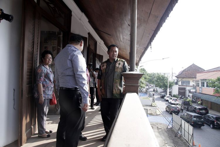 Wali Kota Semarang, Hendrar Prihadi, mengawasi proyek revitalisasi Kota Lama Semarang, Selasa (24/4/2018).