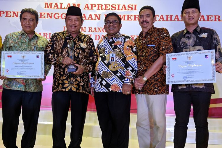Pemerintah Kabupaten Trenggalek meraih penghargaan dengan status Sangat Tinggi Bintang Tiga dari Kementerian Dalam Negeri dalam acara Malam Apresiasi Penyelenggaraan Pemerintahan Daerah di Jakarta, Rabu (25/4/2018)