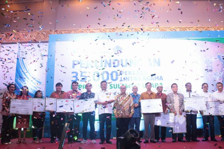 Pemerintah Provinsi Sulawesi Utara memecahkan rekor MURI pemberian jaminan sosial ketenagakerjaan untuk pekerja lintas agama terbanyak di Indonesia, Jumat (11/5/2018).