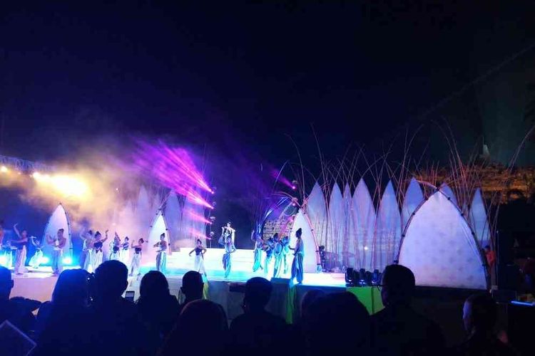 Pergelaran Mahakarya Borobudur 2018, Indonesia Berkain, di Taman Aksobya Candi Borobudur, Magelang, Jawa Tengah, Rabu (18/4/2018) malam.