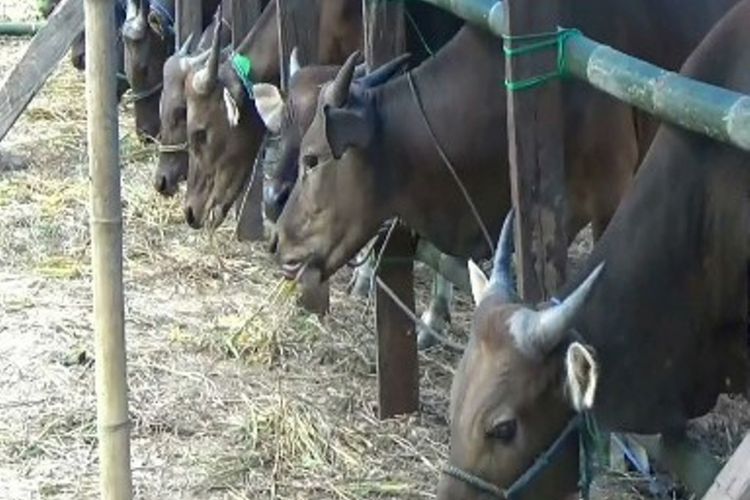 Petugas gabungan dari Dinas pertanian dan kehutanan bekerja sama dengan pihak Kepolisan Dan Petugas Kesehatan Hewan Polewali Mandar menggelar pemeriksaan hewan qurban ke sejumlah sentra-sentra penjualan hewan qurban di Polewali Mandar, Sulawesi Barat, Selasa (29/8). (KOMPAS.Com)