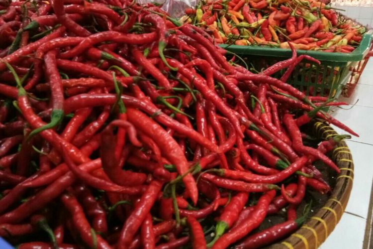 Ilustrasi: Cabai merah keriting dan cabai rawit merah di Pasar Sukatani Deppen Depok.
