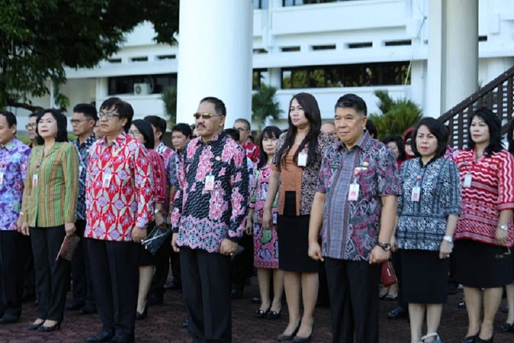 Pegawai Pemerintah Provinsi Sulawesi Utara mengikuti apel pada hari pertama bekerja setelah cuti bersama Lebaran 2018, Kamis (21/6/2018)