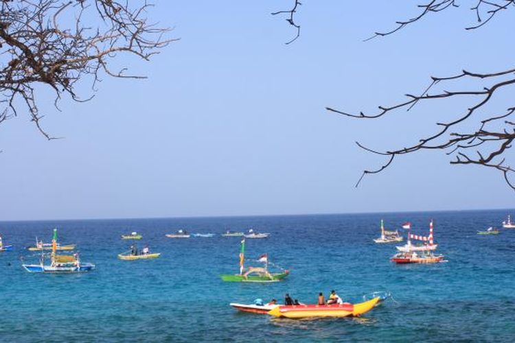 Perahu hias di Pantai Pal, Marinsow, Likupang Timur, Kabupaten Minahasa Utara. Pantai ini jadi tempat terselenggaranya Festival Bunaken 2015 dari 24 - 27 Oktober 2015.(KAHFI DIRGA CAHYA/KOMPAS.COM)