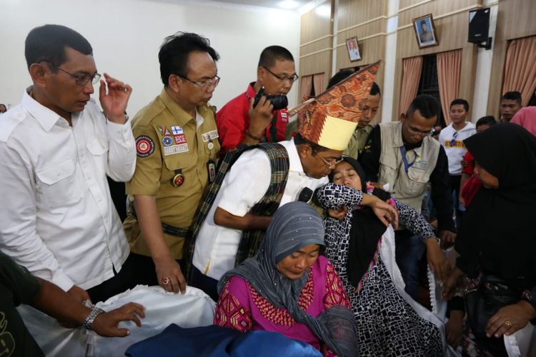 Menteri Sosial Idrus Marham menyampaikan bantuan sosial bagi korban KM Sinar Bangun, Senin (9/7/2018)
