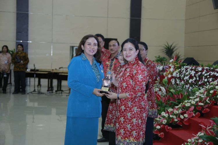 Ketua Tim Penggerak PKK Kota Semarang Tia Hendrar Prihadi menerima penghargaan dari Menko PMK Puan Maharani saat peringatan Harganas di Kota Manado, Sulawesi Utara, Sabtu (8/7/2018)