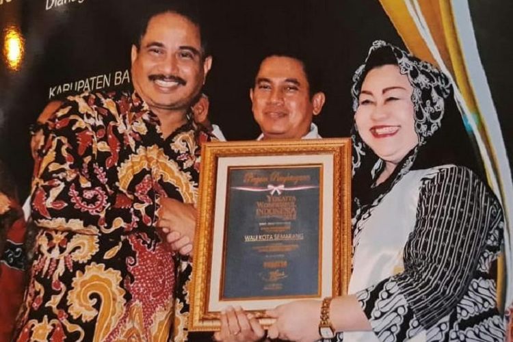 Menteri Pariwisata RI Arief Yahya menyerahkan Yokatta Wonderful Indonesia Tourism Awards (Yowita) 2018 kepada Wali Kota Semarang Hendrar Prihadi yang diwakili oleh Asisten Administrasi Umum Masdiana Safitri di Kantor Kementerian Pariwisata Jakarta, Jumat malam (20/7/2018).(Dok. Humas Pemkot Semarang)