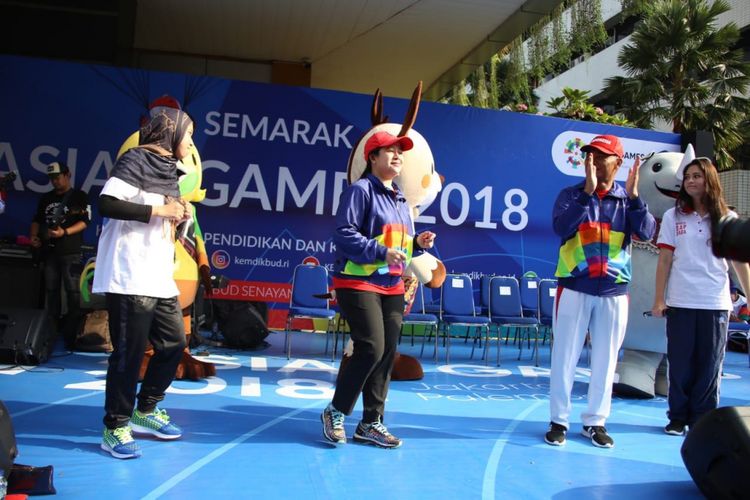 Menko PMK Puan Maharani mengajak seluruh pegawai Kementerian Pendidikan dan Kebudayaan untuk menyukseskan Asian Games 2018, Sabtu (4/8/2018)