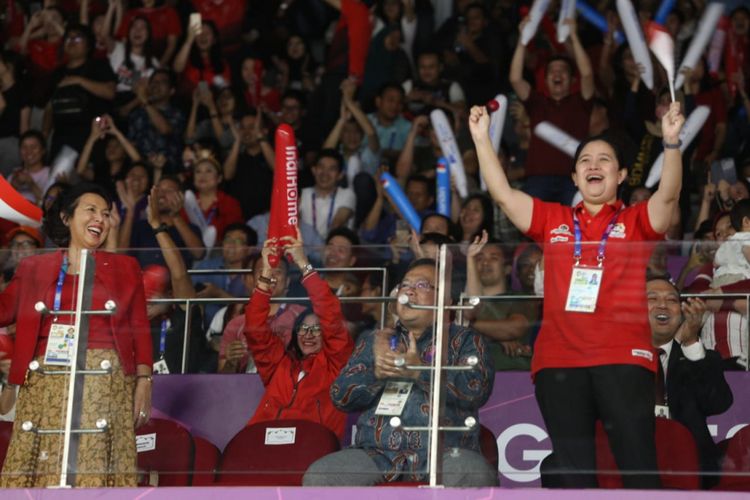 Menko PMK Puan Maharani menyaksikan langsung pertandingan final tunggal putera dan ganda putera badminton Asian Games ke-18, di Istora GBK, Selasa (28/8/2018)(DOK Kemenko PMK)