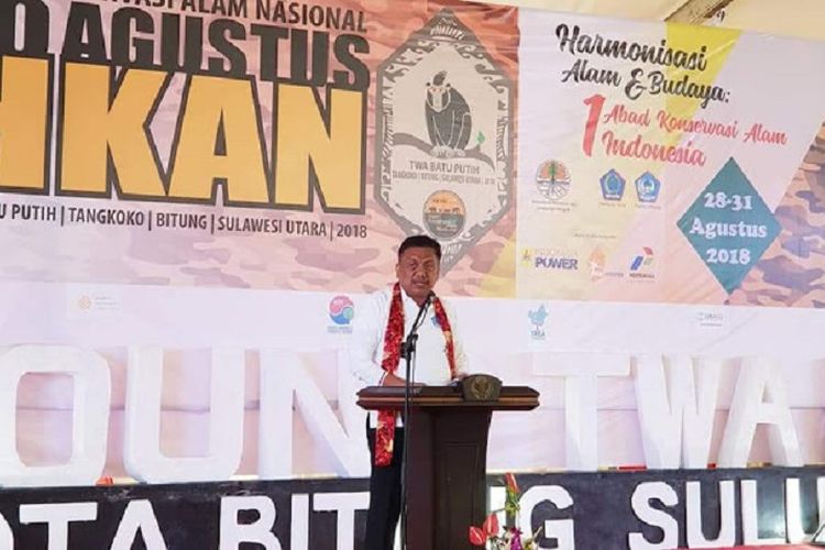 Gubernur Sulawesi Utara Olly Dondokambey dalam peringatan Hari Konservasi Alam Nasional (HKAN) di Taman Wisata Alam (TWA) Batu Putih, Kota Bitung, Kamis (30/8/2018).