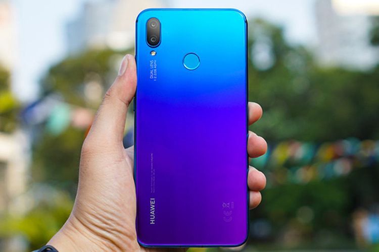 Bagian punggung nova 3i varian iris purple berhias gradasi warna biru-ungu yang menarik. (KOMPAS.com / OIK YUSUF)