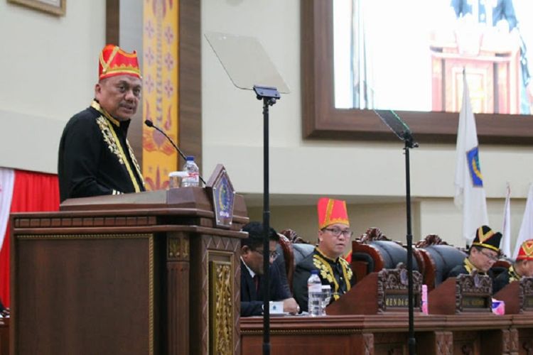Gubernur Sulawesi Utara Olly Dondokambey dalam Rapat Paripurna Istimewa DPRD Sulut dalam rangka Hari Jadi ke 54 Provinsi Sulut, Senin (24/9/2018)