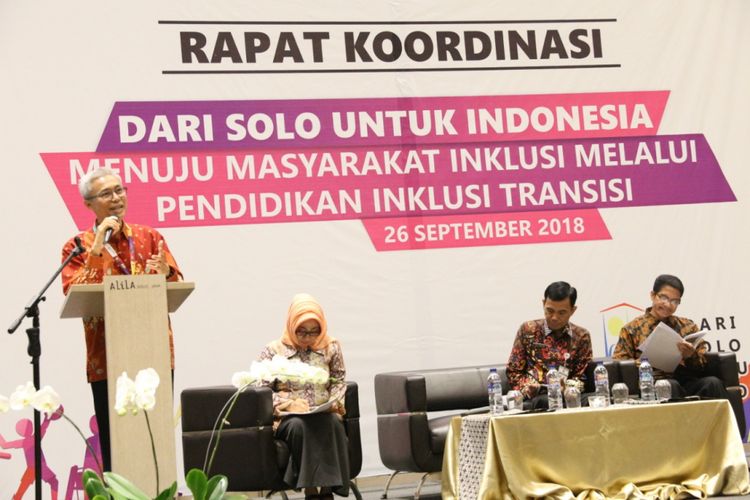Deputi Pemenuhan Hak dan Perlindungan Anak Marwan Syaukani menjadi salah satu narasumberdalam Rapat Koordinasi Dari Solo Untuk Indonesia Menuju Masyarakat Inklusi Melalui Pendidikan Inklusi Transisi di Hotel Alila, Solo, Rabu (26/9/2018)(Dok. Kemenko PMK)